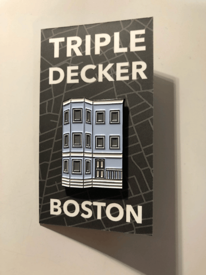 The Triple-Decker, or Three-Decker, is a vernacular housing type closely associated with New England, and with the Boston area in particular. They are three-story, wood-frame, multi-family houses that were largely built in the late 19th and early 20th centuries to house working-class families. Today, they remain a distinctive and integral part of the landscape of New England's cities. Show your local pride with this 1.5"-tall soft enamel pin, that's finally back in stock!